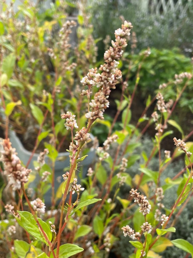 秋の庭仕事 2025年10月19日 setsuko 未分類 暑い、と言っても25℃ 真夏に比べれば、、と頑張って庭の事を 毎日少しずつ 夏の枝の剪定やら 草抜き・・・ 冬の到来が早いそうだから、植え替えも・・・と焦ったり 季節外れの花に 感激したりもしています。 そんな私を見ているのが↓↓ 今日のミニ畑の藍 白い花が目立ってきました。 プランターの藍は と言うと↓↓ もうすぐ種・・・ 秋ですね。 Leave a comment