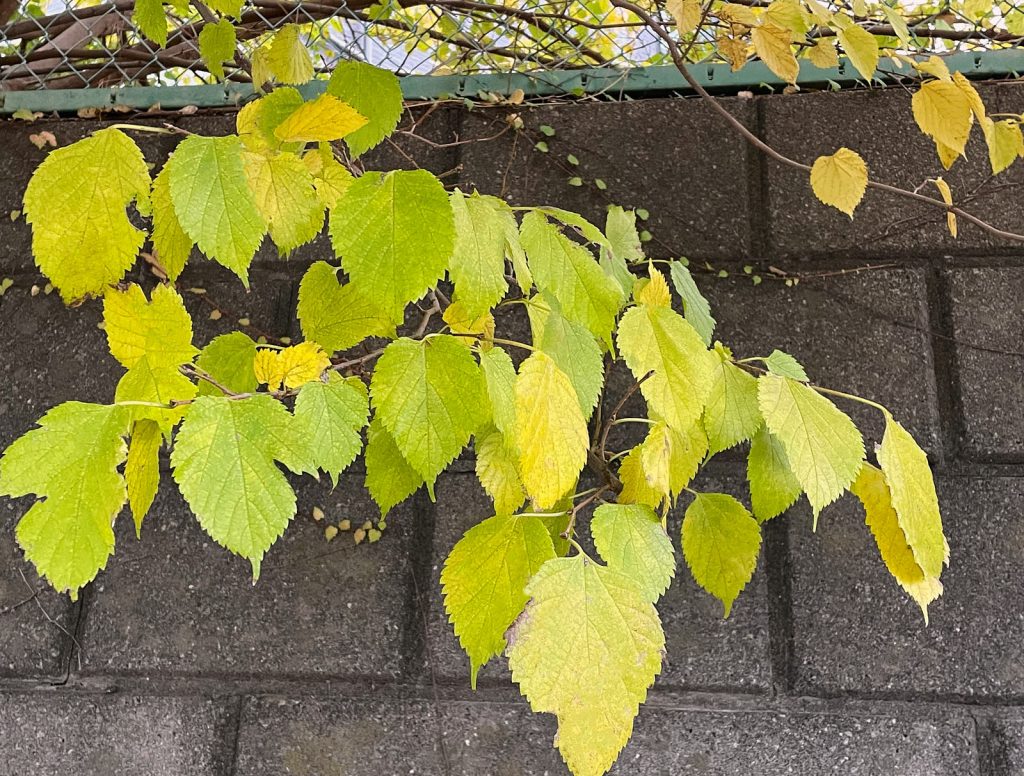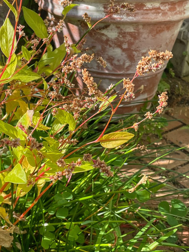 我が家のミニ畑の藍も、朝日を受けて黄金色に⤵︎