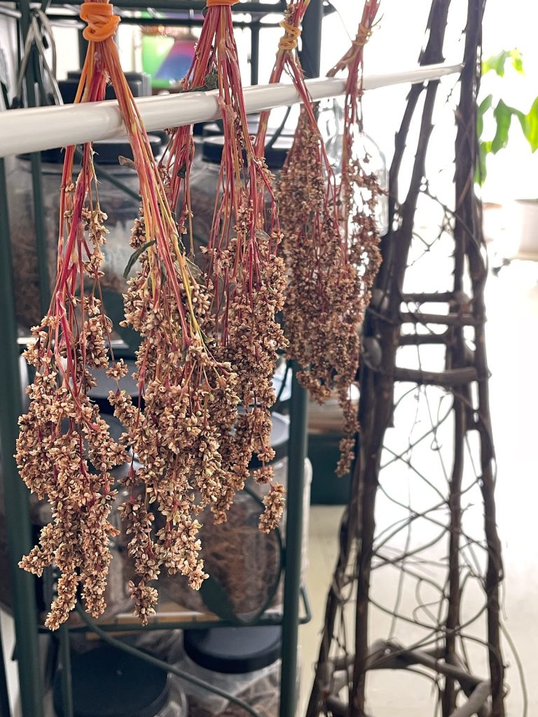 この花穂↑↑の中に種が潜んでいるので、乾燥させてから取り出します。