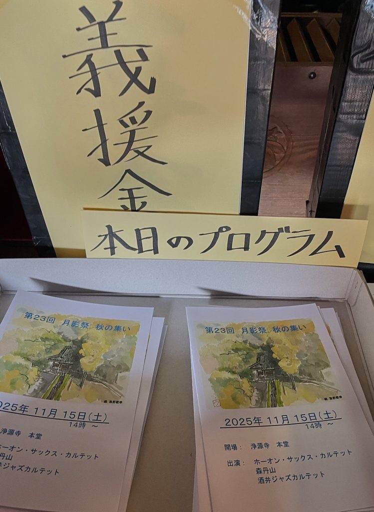 お堂いっぱいに音楽好きが集い、心ゆくまでジャズのリズムにのって ふっと力が抜けた時、住職さんの尺八が奏でる”枯れ葉”もジャズ!