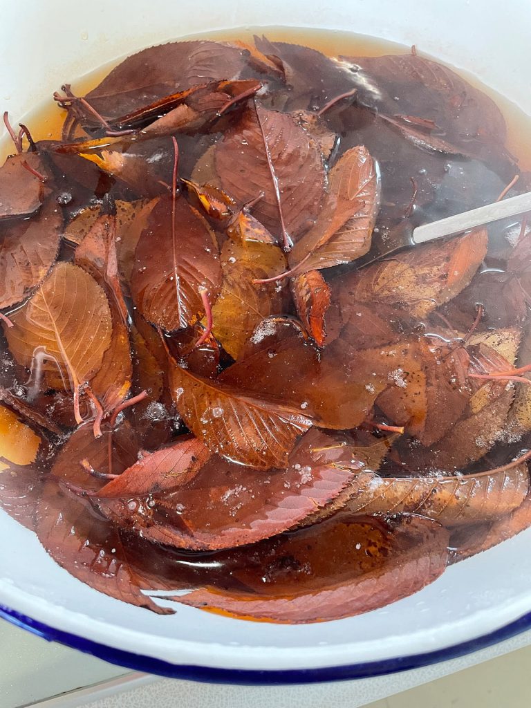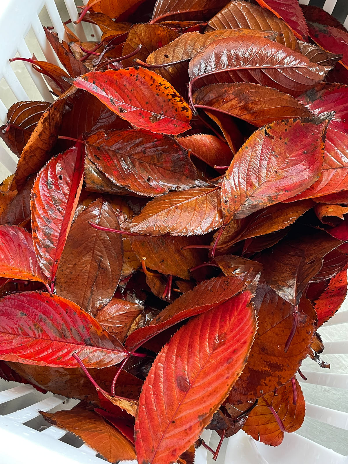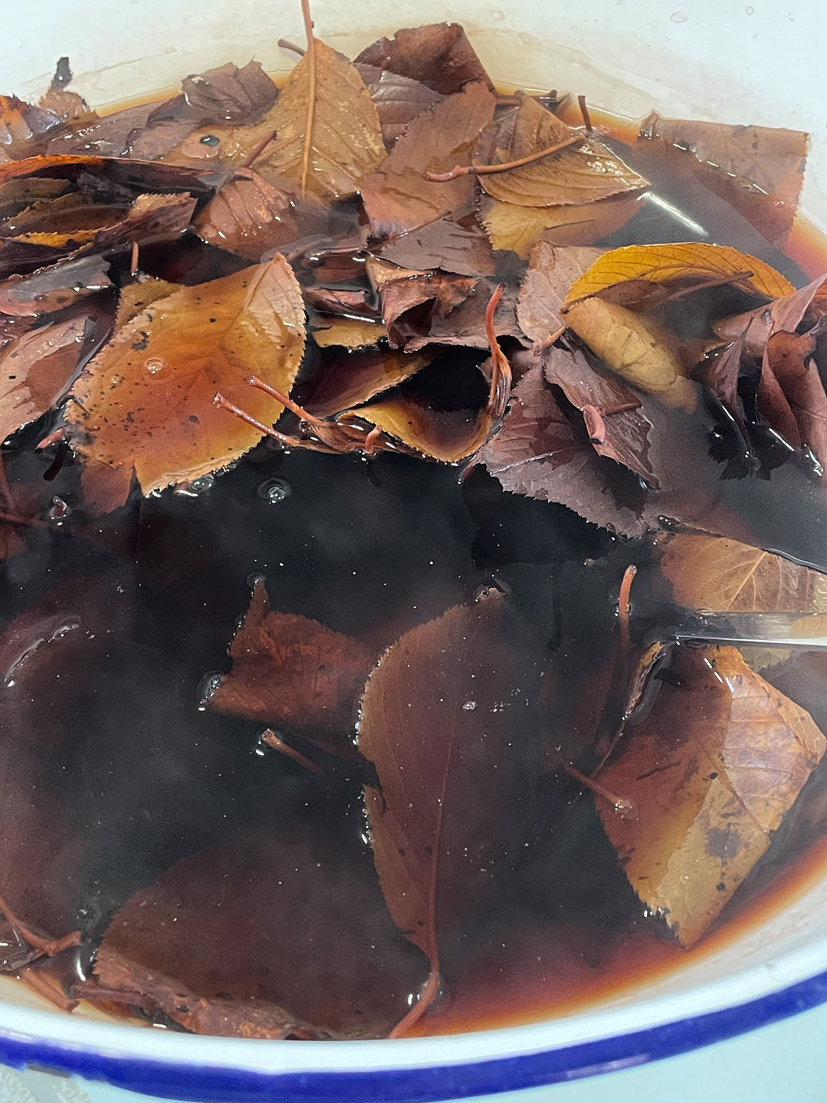 そこで、5年ぶりに桜の落ち葉で染めてみました。
