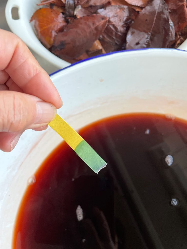 ④ 落ち葉を取り出した抽出液のpHを測ると↓↓