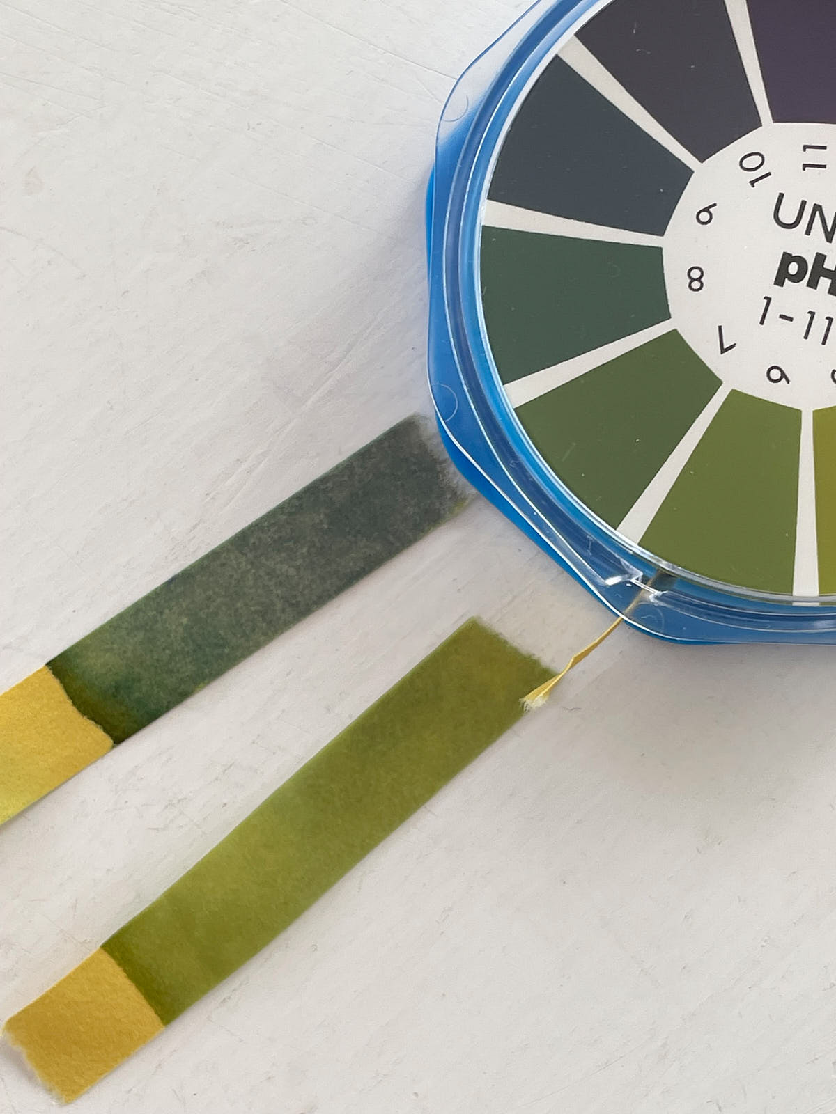 1〜2滴 pH7〜6になるまで調節すると、染め液の出来上がり!