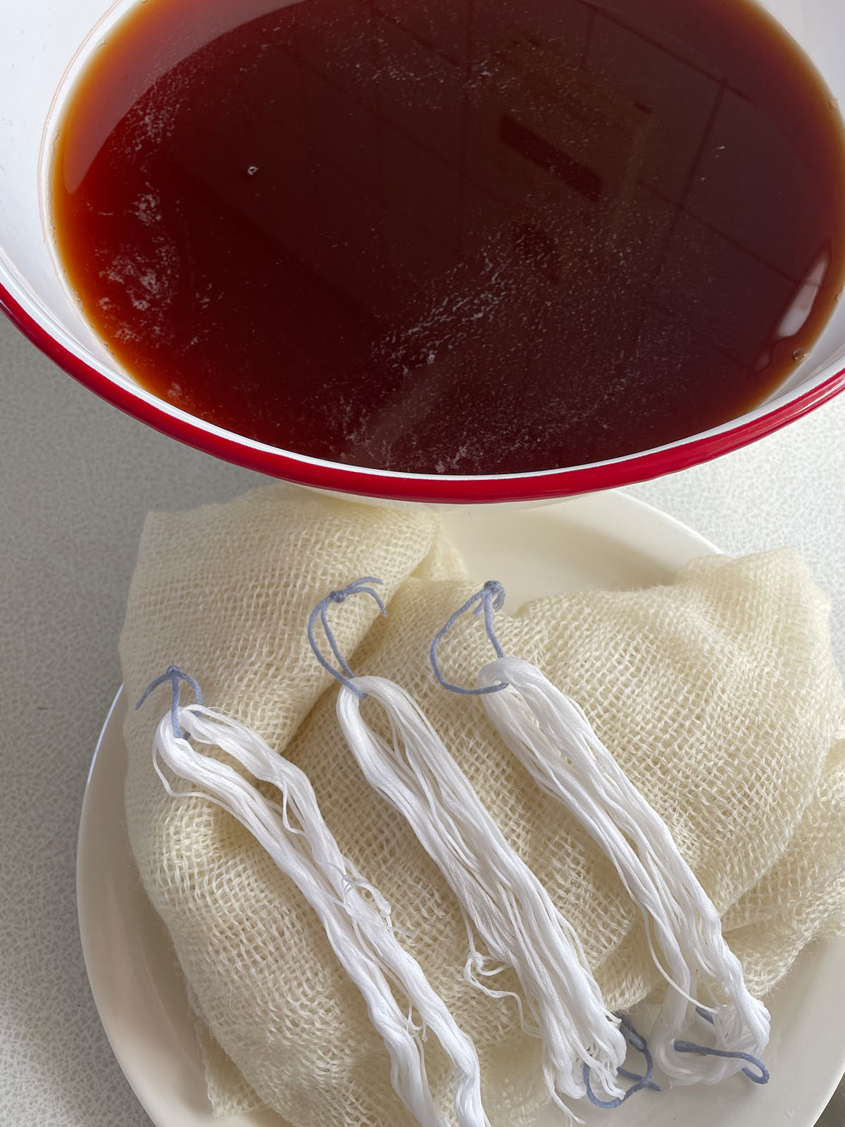 染めるものは 必ず水に浸して親水性を持たせてから使います