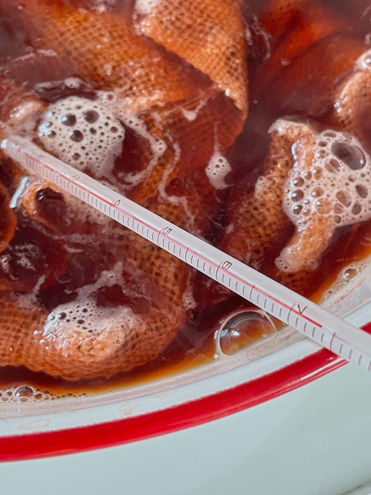沸騰させず 70℃〜73℃ Keepで30分弱火で煮る