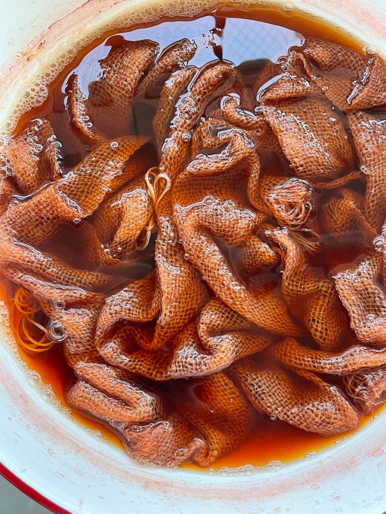 染め液に染める物を入れて、よく馴染ませてから中火にかけます↓↓