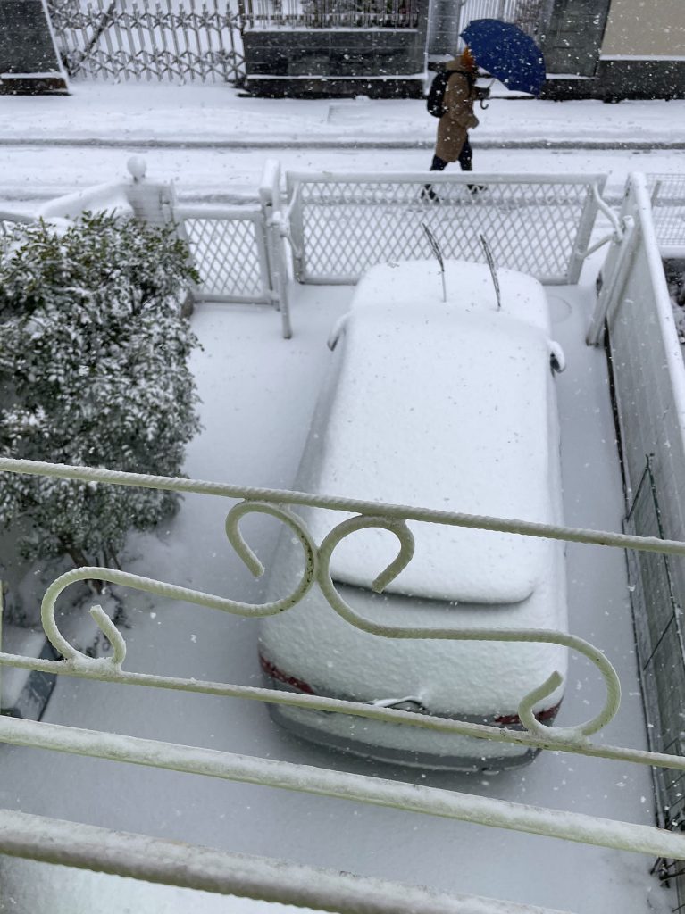 昨日のみぞれが いつの間にか雪になっていました。